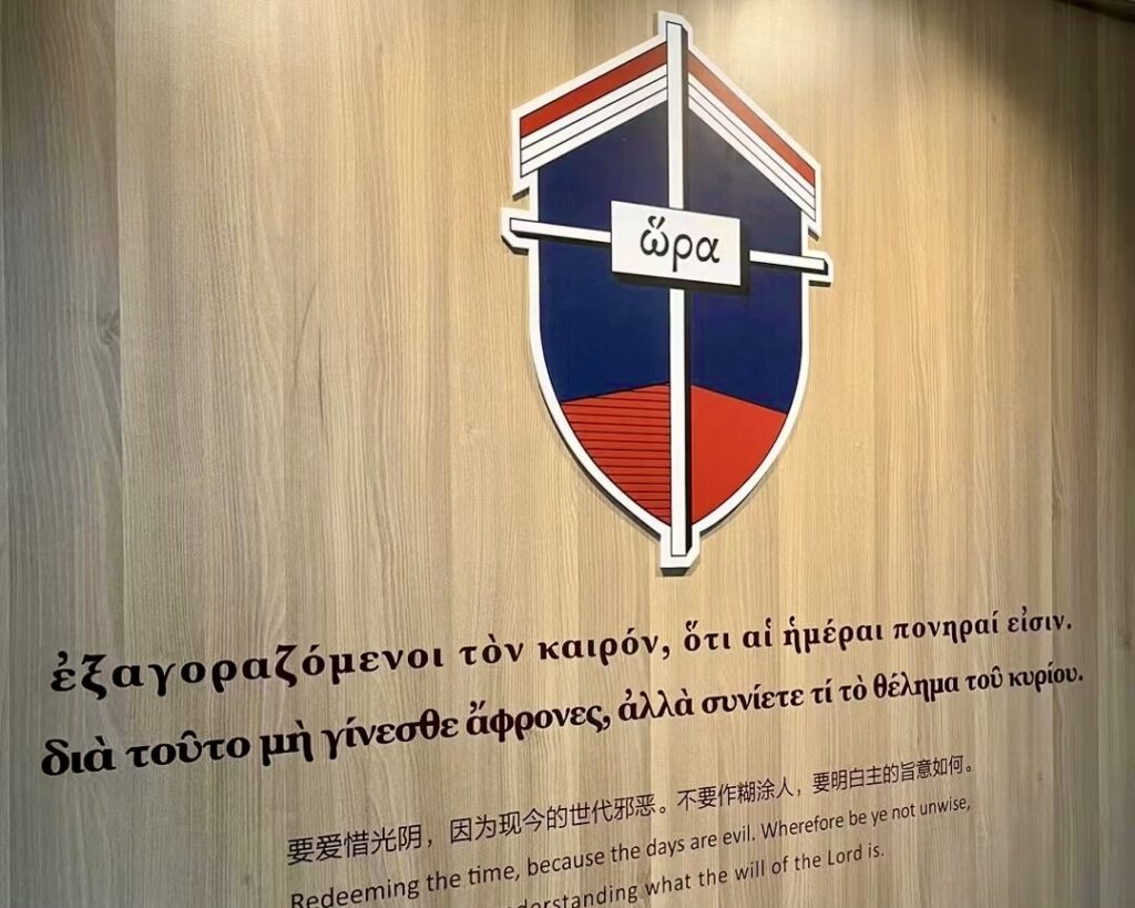 学校的校训是:“要爱惜光阴,因为现今的世代邪恶。不要作糊涂人,要明白主的旨意如何。”以弗所书5:16-17